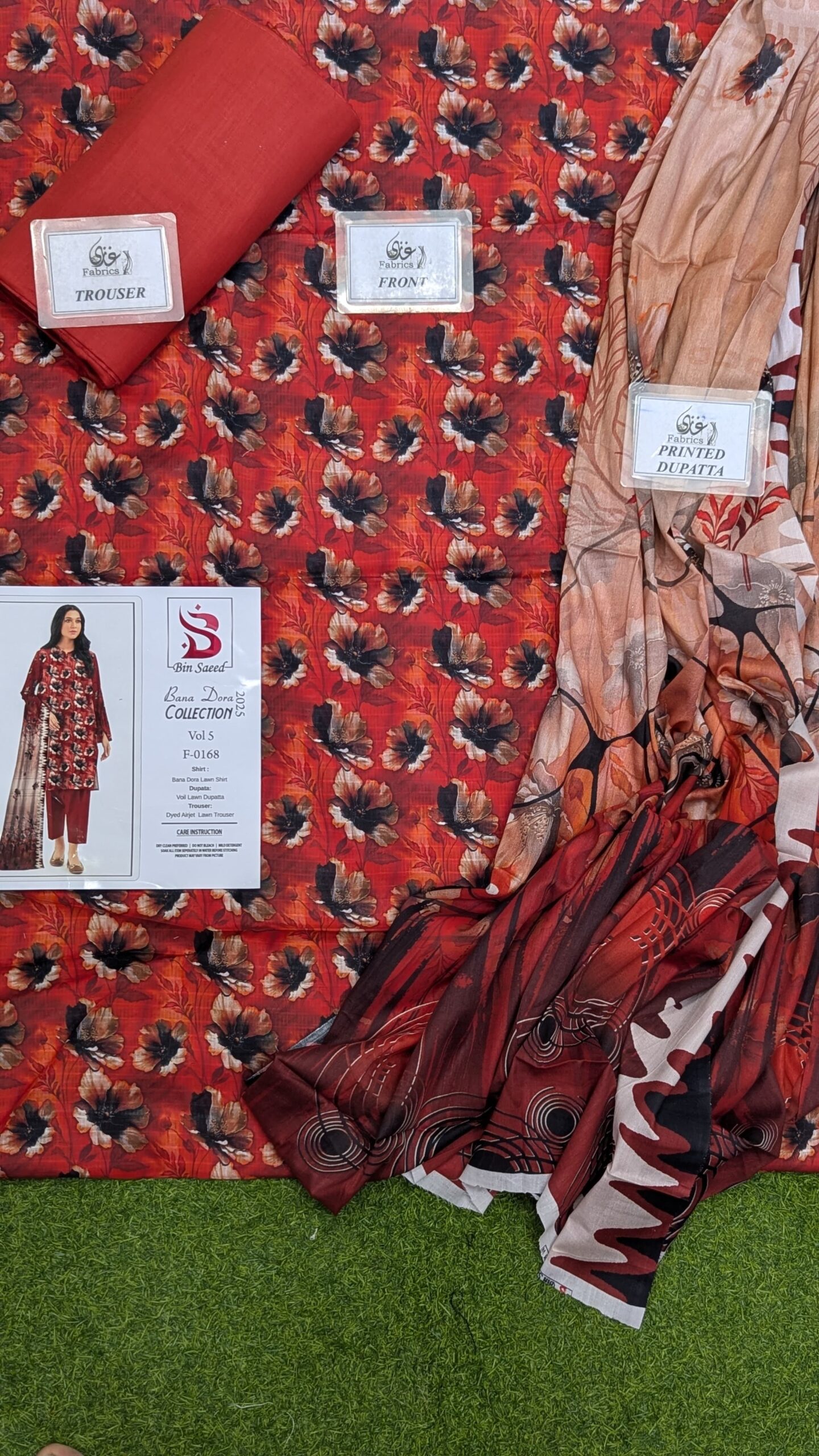 BINSAEED❤️Bana Dora 3piece•Premium printed Bana Dora lawn shirt 2.85 meter•Premium printed Voli lawn dupatta 2.25 meter•_Premium Airjet cambric trouser_2.25