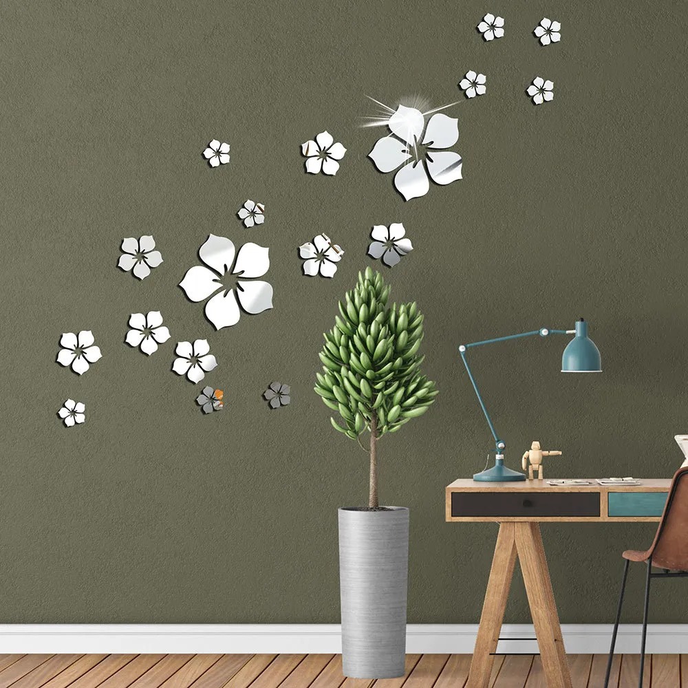 Wide application:Β It can be stuck on any smooth and clean surface, tiles, glass, furniture, etc., Not suitable for dirty or rough surfaces.Decorative stickers: This is a product full of interesting life, which can create a warm and romantic atmosphere.Trend Decoration:Β This amazing wall stickers make it so easy to keep up with the most current fashion decoration trends.Unique shape: Heart-shaped design, full of love and cute.Easy to use: These mirror stickers can be fixed easily by its back-adhesive and removed without damaging your wall.Description: Wall decorations 20 flower set