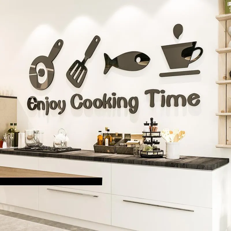 Name : Modern 3D Wall Stickers Style : Modern Material : Acrylic Features: Waterproof Applicable scene : Home,Hotels, rooms, bedrooms, shopping malls, offices Kitchen wall decoration Kitchen stickers MDF Wood material Covered area 8Γ—24 inch