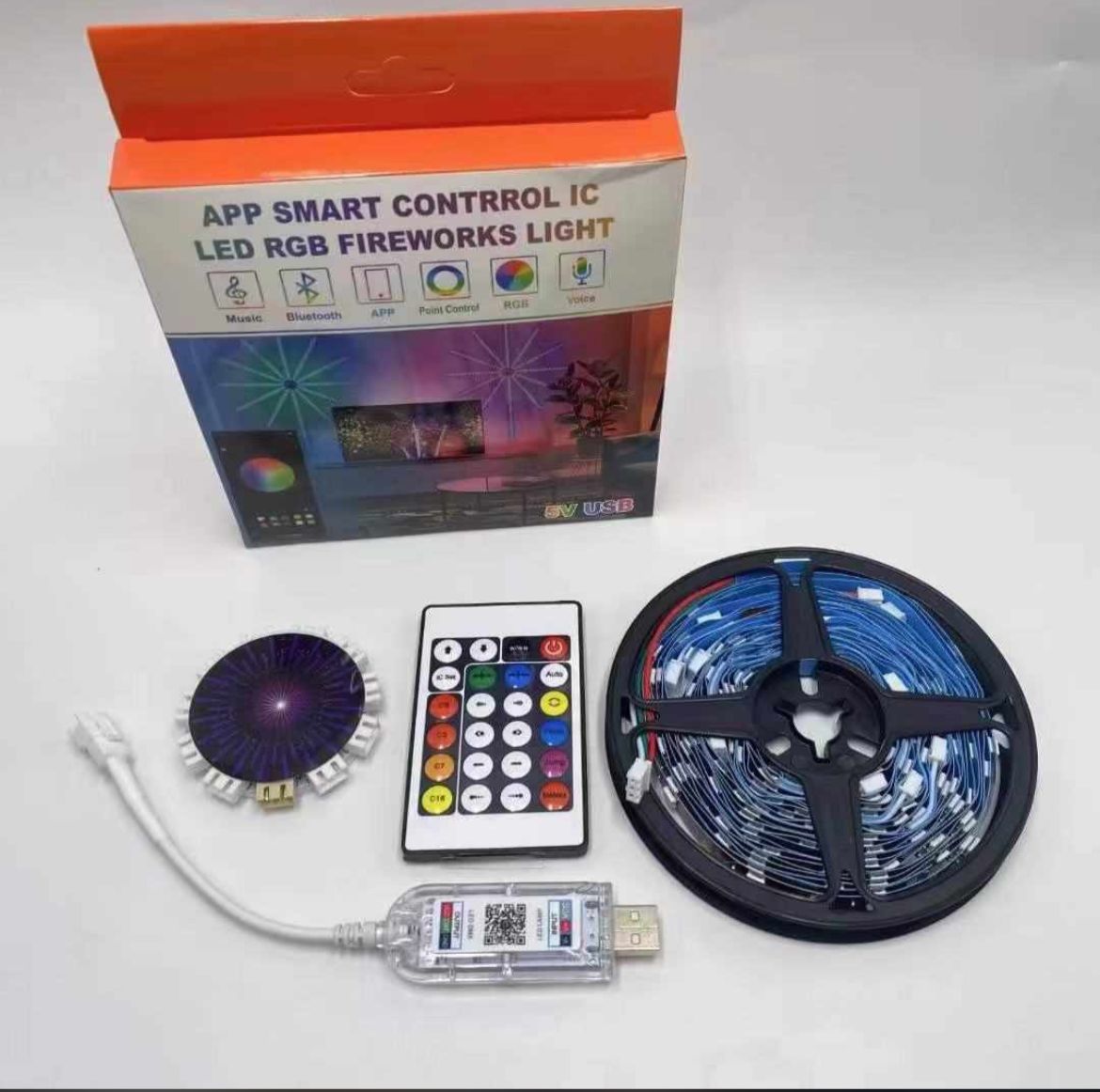 Fireworks light stripLife span 50000H with USB power supply 5v Occasions: Christmas tree decoration, indoor holiday party decoration, gift box decorationLED energy-saving lamp beads can be used indoors, outdoors, high brightness, does not hurt the eyes, and is durableMain branch 1m one 18 beads Branch 0.5m 11 strips 9 beads High brightness Cold light source emitsFull-color lamp beads, dazzling and changeable, multi-color control