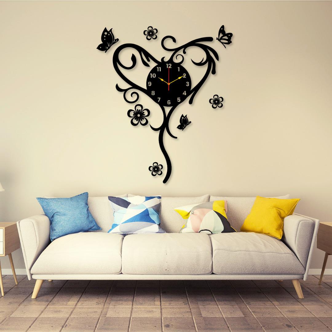Product Name Heart butterfly new clockβΆοΈSize 20×14 inches (Aprov) After InstallationβΆοΈMaterial chipboard laminated sheetβΆοΈThickness 3mmβΆοΈColour BlackβΆοΈComplete box packβΆοΈAll pieces stick on wall with double tapeβΆοΈWeβll provide double along the packageβΆοΈCame in piece