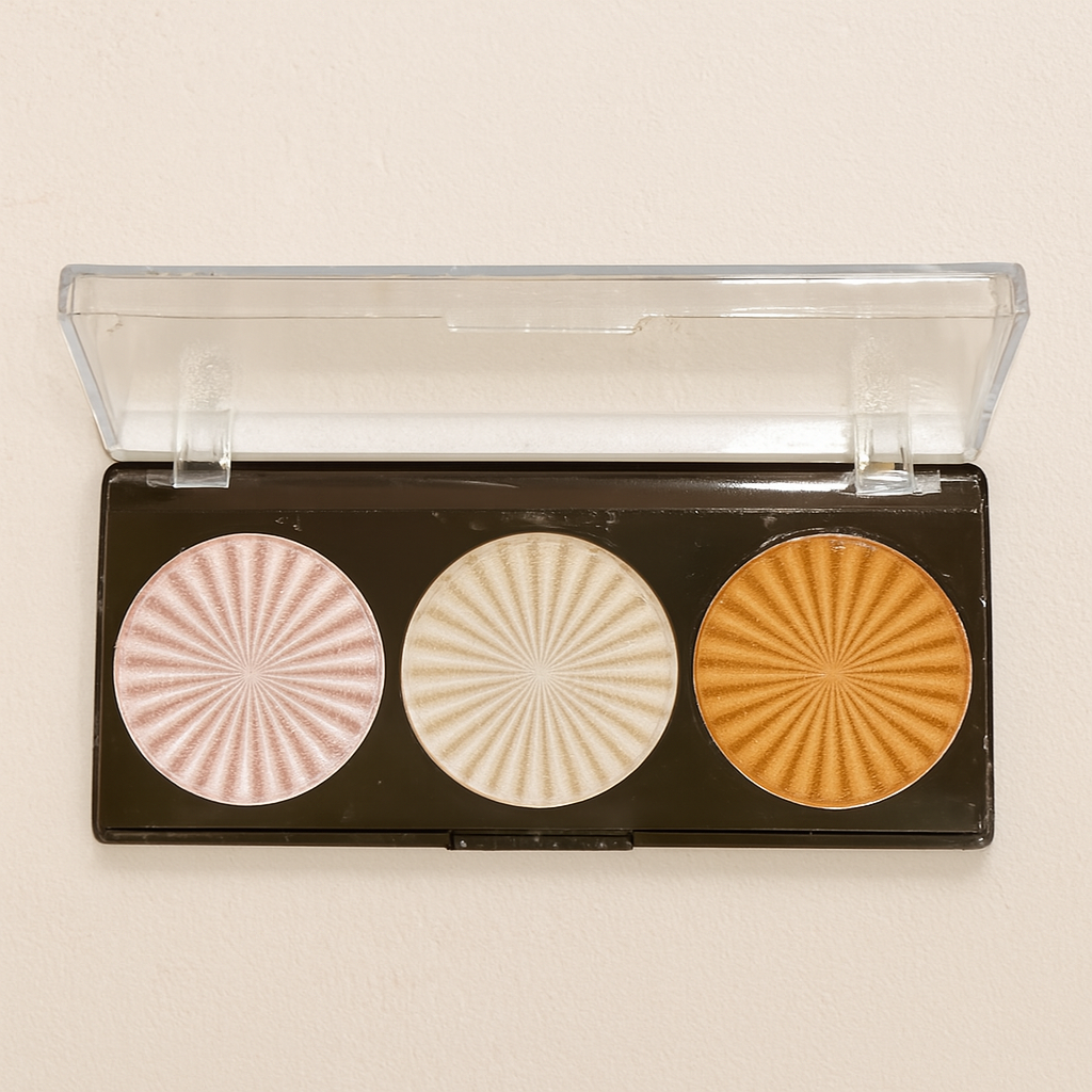 Miss Rose 3-Color Highlighter Palette β Peach, Light Golden & Silver ShadesEnhance your makeup look with the Miss Rose 3-Color Highlighter Palette, featuring three versatile shades β Peach, Light Golden, and Silver. Designed to suit all skin tones, these silky smooth powders deliver a buildable glow, from a subtle shimmer to a bold highlight. Perfect for face and body application, this compact palette is ideal for everyday use or special occasions.Key Features:3-shade highlighter palette: Peach, Light Golden, SilverSilky smooth texture with buildable glowSuitable for all skin tonesCompact and travel-friendly designIdeal for face, cheeks, and body highlighting