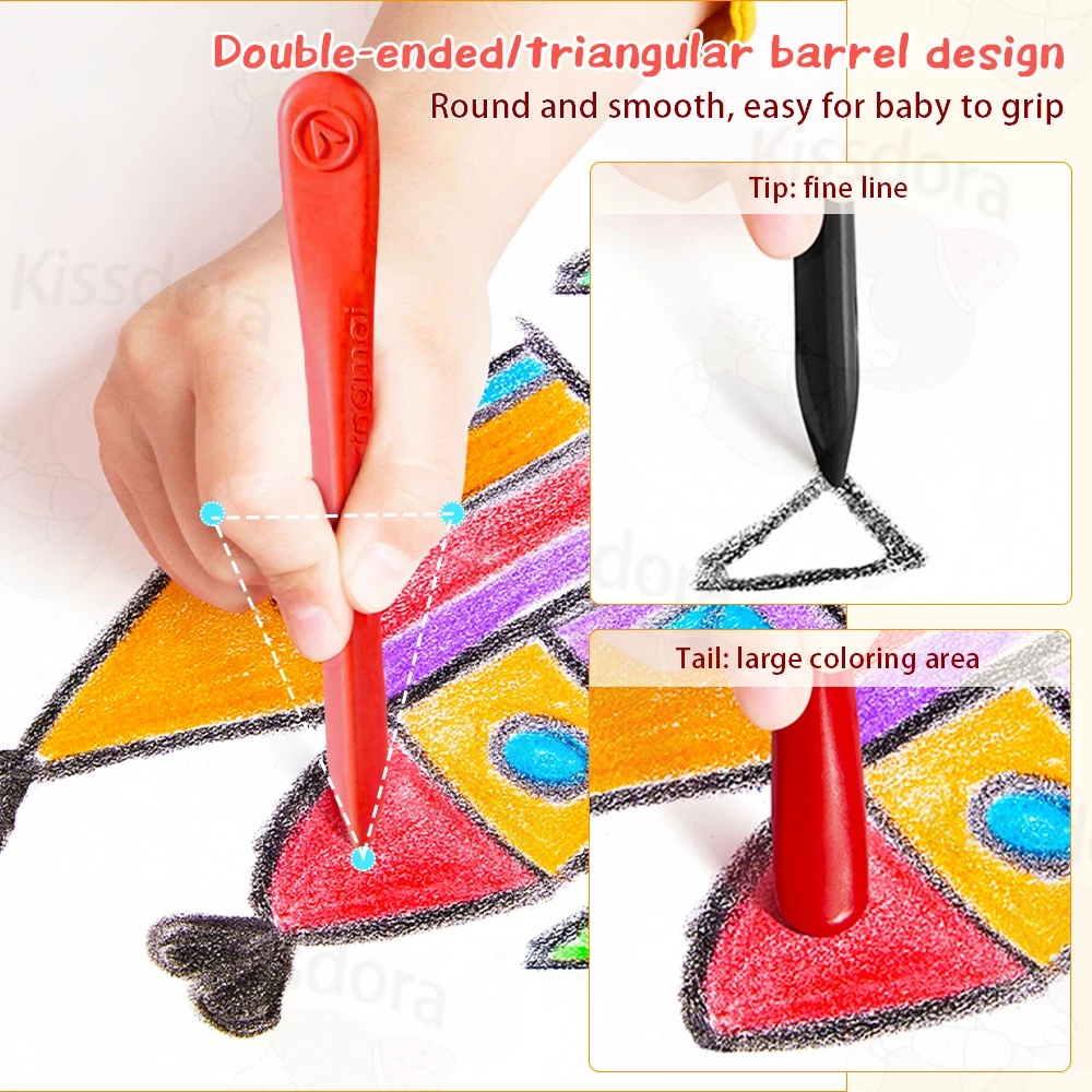 product details1. UNIQUE PAINTING EXPERIENCE: Our triangular crayons are safe, non-toxic, non-stick, shockproof, waterproof and easy to grasp. A variety of vibrant colours will satisfy your little sweetie’βs imagination and creative needs.2. Staying clean while drawing: Thanks to natural materials and special ingredients, our triangular crayons always keep your child’s hands clean, so parents don’t have to worry about the colourful stains left behind by your child’s artwork each time.3. A wide range of vibrant colours: Your child will love expressing his inner artist with 36 exciting colours. These unique triangular crayons are so well coloured that they stick easily to the paper rather than to yourchild’s hands, creating a great art experience for your child.4. |IDEAL GIFT FOR LOVING CHILDREN: For those looking for an enjoyable drawing experience, our triangular crayons are the best choice. This product is perfect for stocking fillers for children from 3 years old.5. Stylish triangular shape: Thanks to their unique shape, our triangular crayons resist rolling. By using them, children will develop proper writing skills and thus improve their writing readiness.