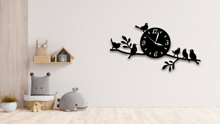 Wall clockWooden material36Γ12 inch sizeA Beautiful Combination of Sparrows, Tree Branch, and a Clock. Beautiful Big Black wall clock is nested between tree branches with sparrows on it which will produce an eye-catching scene for the viewers. Elegant & AttractiveΒ art will add more beauty to your wall and home. Itβs not just a wall clock but a complete set of decoration pieces for your home, living room or bedroom, etc.