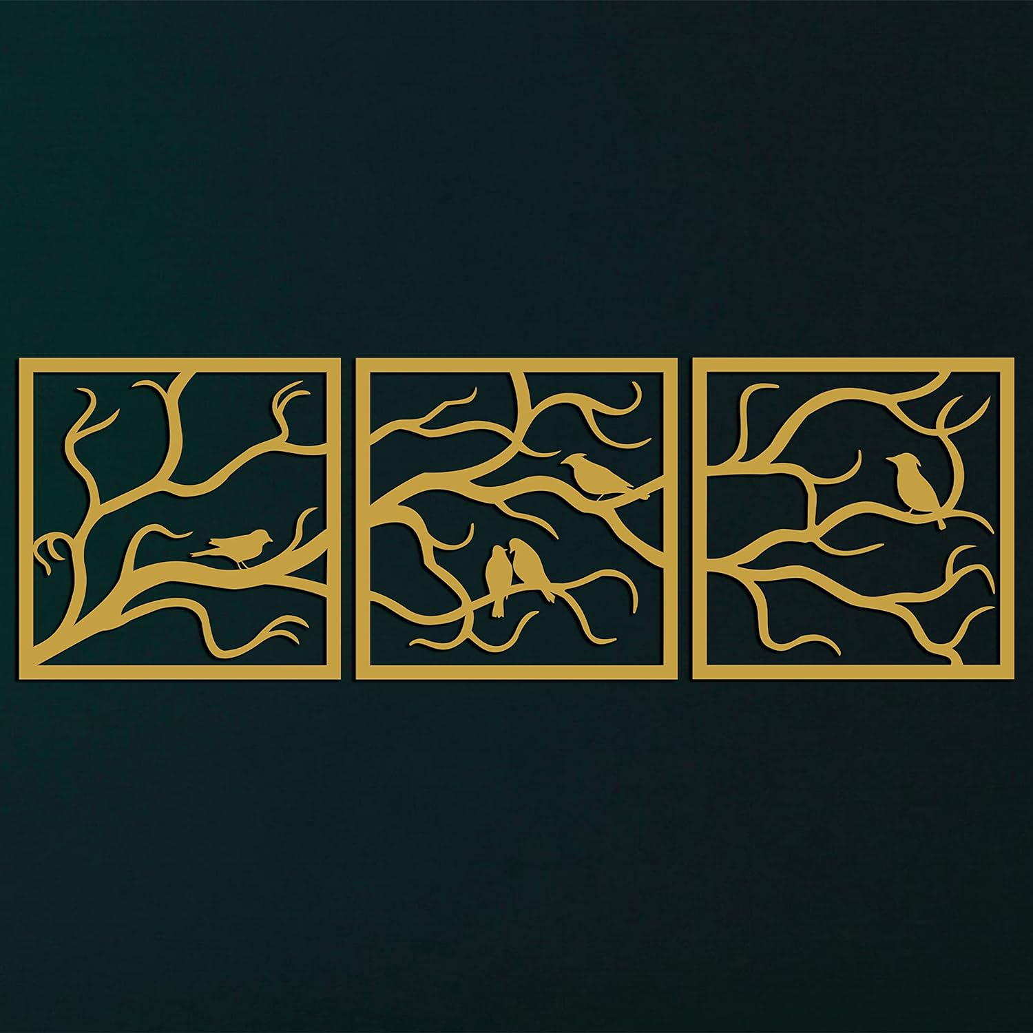 Unique Design Wall Art, 3 Panels Birds on Branch Wall Art by DecoMood. For indoor and outdoor use. Tree artWall decorationsAcrylic mirror material24Γ8 inch covered areaGolden color3 pcs set